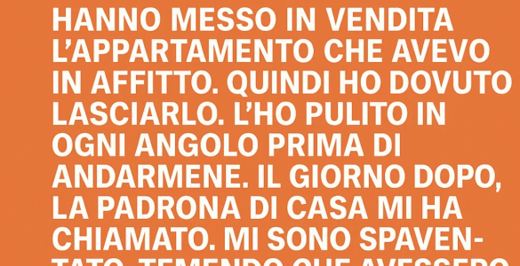 Avevano messo in vendita l’appartamento che avevo in affitto, così dovetti andarmene. Pulii ogni angolo e me ne andai. Il giorno dopo mi chiamò la padrona di casa. Ebbi paura che avessero trovato qualcosa di rotto. Ma...