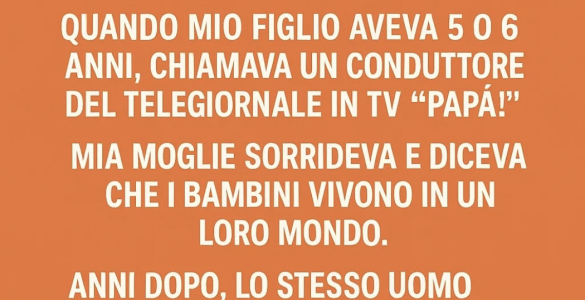 Quando mio figlio aveva 5 o 6 anni, chiamava un conduttore del telegiornale in TV “Papà!”. Mia moglie sorrideva e diceva che i bambini vivono in un mondo tutto loro. Anni dopo, lo stesso uomo riapparve in TV. Scherzai:...