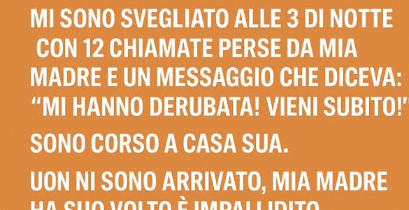 Mi sono svegliato alle 3 di notte con 12 chiamate perse da mia madre e un messaggio che diceva: “Mi hanno derubata! Vieni subito!” Sono corso a casa sua, mezzo vestito, con il cuore in gola. Vive a 15 minuti da me, ma...