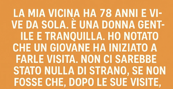 La mia vicina ha 78 anni e vive da sola. È una donna gentile e silenziosa. Ho notato che un giovane ha iniziato a farle visita. Non ci sarebbe stato nulla di strano, se non fosse che, dopo le sue visite, sentivo delle...
