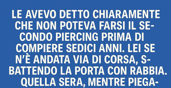 Avevo detto a mia figlia che non avrebbe potuto farsi il secondo piercing prima dei sedici anni. Lei era scappata via, sbattendo la porta. Quella sera, mentre piegavo il bucato, mi accorsi che uno dei miei orecchini era...