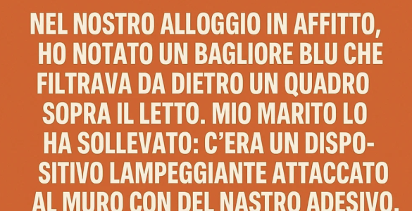 Nel nostro appartamento in affitto, ho notato un bagliore blu che filtrava da dietro un quadro sopra il letto. Mio marito l’ha sollevato: c’era un dispositivo lampeggiante, fissato al muro con del nastro adesivo...
