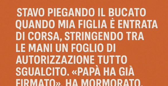 Stavo piegando il bucato quando mia figlia irruppe nella stanza stringendo un modulo di autorizzazione tutto stropicciato. «Papà ha già firmato», mormorò. Mi si strinse lo stomaco: suo padre era andato via sei mesi...