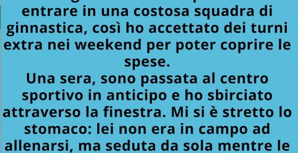 Mia figlia mi aveva supplicato di entrare in una squadra di ginnastica artistica molto costosa, così avevo iniziato a fare turni anche nei weekend per poter pagare la quota. Una sera, passai al centro sportivo con un...