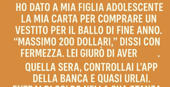 Ho dato a mia figlia adolescente la mia carta per comprare un vestito per il ballo di fine anno. “Massimo 200 dollari,” dissi con fermezza. Lei giurò di aver capito. Quella sera, controllai l’app della banca e quasi...