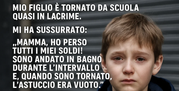 Mio figlio è tornato a casa dopo la scuola quasi in lacrime. Mi ha sussurrato: — “Mamma, ho perso tutti i miei soldi! Sono andato in bagno durante l’intervallo, e quando sono tornato, il mio astuccio era vuoto.” Ho...