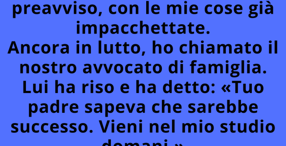 Subito dopo il funerale di nostro padre, mia sorella mi ha cacciato di casa senza preavviso, con le mie cose già impacchettate. In preda al dolore, ho chiamato il nostro avvocato di famiglia. Lui ha riso sommessamente e...