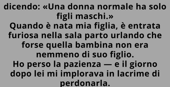 Mia suocera era ossessionata dall’idea che dovessi partorire un maschio. Ridipinse perfino la cameretta di blu e insisteva dicendo: «Una vera donna fa solo figli maschi.» Quando partorii una bambina, fece irruzione...