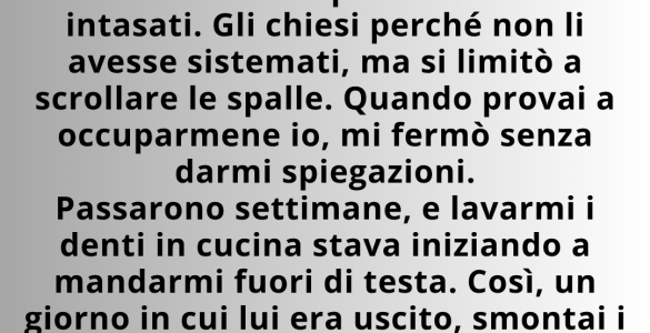 Sono tornato a casa di mio padre dopo un anno lontano. Era felice di rivedermi, ma il lavandino del bagno funzionava a malapena: i tubi erano completamente otturati. Gli chiesi perché non li avesse mai sistemati, ma si...