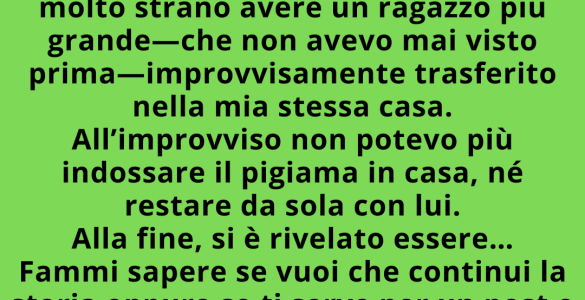 Un ragazzo di 15 anni venne a vivere con noi e rimase fino ai 21. Era una situazione molto strana per me, adolescente, ritrovarmi in casa un ragazzo più grande che non avevo mai visto prima. All’improvviso non potevo...