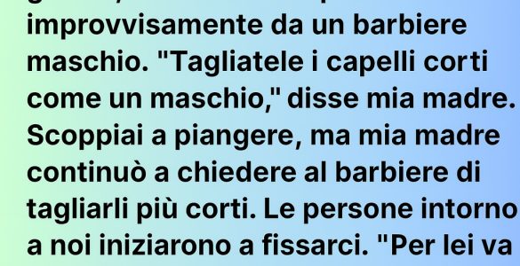 Quando ero in seconda superiore avevo i capelli molto lunghi. Un giorno, mia madre mi portò improvvisamente in un barbiere per uomini. “Tagliale i capelli corti, come un maschio”, disse. Scoppiai a piangere, ma lei...