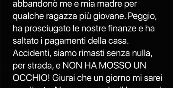 Avevo 17 anni quando mio padre ci ha lasciate. Ha abbandonato me e mia madre per una donna più giovane. E come se non bastasse, ha prosciugato i nostri risparmi e smesso di pagare il mutuo. Ci ha lasciate con il nulla...