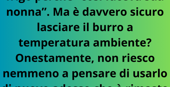 Ma è davvero sicuro lasciarlo lì, a temperatura ambiente? Io non riesco nemmeno a pensare di usarlo adesso che è rimasto fuori per giorni. Ogni volta che entro in cucina, quella piccola burriera mi sfida. È come un...