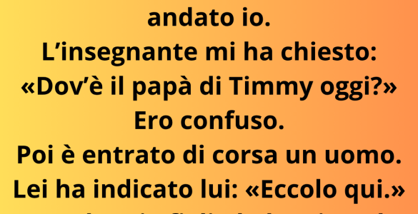 Mia moglie prende sempre nostro figlio all’asilo. Oggi però era malata, così sono andato io. L’insegnante mi ha chiesto: «Dov’è il papà di Timmy oggi?» Ero confuso. Poi è entrato di corsa un uomo. Lei lo ha indicato:...