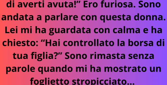 Mia figlia, 7 anni, è tornata a casa piangendo. L’insegnante le ha detto: “Tuo papà deve rimpiangere di averti avuta!” Ero furioso. Sono andato a parlare con questa donna. Mi ha guardato con calma e ha chiesto: “Hai...
