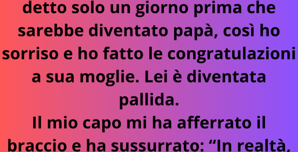 Ho visto il mio capo in un ristorante con sua moglie. Sono andata a salutarlo. Ci aveva detto solo un giorno prima che sarebbe diventato papà, così ho sorriso e ho fatto le congratulazioni a sua moglie. Lei è diventata...