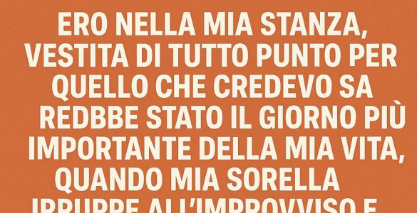 Ero nella mia stanza, vestita per quella che pensavo sarebbe stata la giornata più importante della mia vita, quando mia sorella irruppe trafelata e disse: «Spero che un giorno riuscirai a perdonarmi!» Poi infilò...