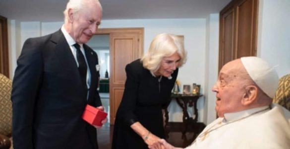 Papa Francesco ha accolto Re Carlo III e Camilla in un incontro privato presso Casa Santa Marta, il 10 aprile. Nella foto diffusa dal Vaticano, il Pontefice appare sorridente e seduto su una poltrona, senza le cannule...