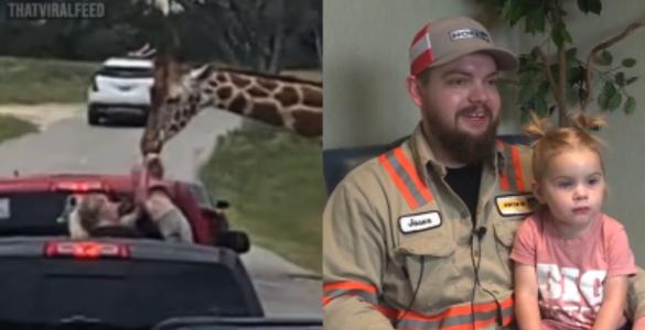 La mamma si aggrappa disperatamente al suo bambino mentre una giraffa la strappa dal camion al safari drive-thru. La giornata in famiglia ha preso una svolta drammatica quando si sono fermati per dare da mangiare alle...