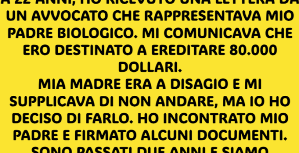 Avevo 22 anni quando una lettera di un avvocato sconvolse la mia vita. Diceva che mio padre biologico—un uomo che non avevo mai conosciuto—voleva lasciarmi in eredità 80.000 dollari. Mia madre andò su tutte le furie...