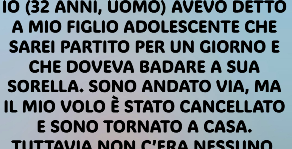 Io (32 anni) avevo detto a mio figlio adolescente che sarei stato via per un giorno e che doveva badare a sua sorella. Sono partito, ma il volo è stato cancellato, quindi sono tornato a casa. Ma non c’era nessuno. L’ho...