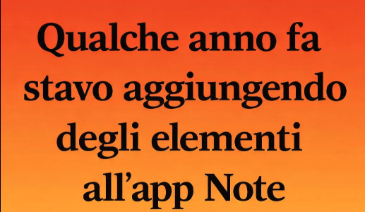 Qualche anno fa stavo aggiungendo alcune cose all’app Note sul telefono di mia moglie. L’app si aprì sull’ultima lista, intitolata: “Cose di cui avrò bisogno se lo lascio.” All’inizio rimasi a fissarla. Il pollice...