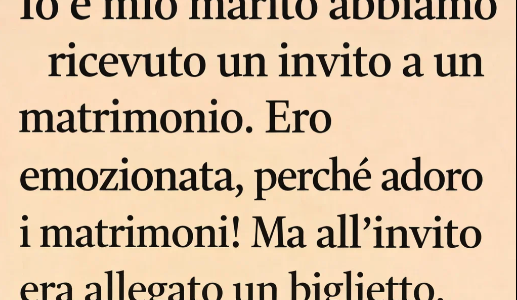 Io e mio marito abbiamo ricevuto un invito a un matrimonio. Ero entusiasta, perché adoro i matrimoni! Ma a questo invito era allegato un biglietto. Lo stavo leggendo… e stavo perdendo la calma—mentre mio marito era...