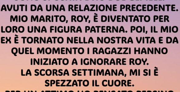 Sono sposata e ho due gemelli avuti da una precedente relazione. Mio marito, Roy, è diventato per loro una figura paterna. Poi, il loro padre biologico è tornato e da quel momento hanno iniziato a ignorare Roy. La...