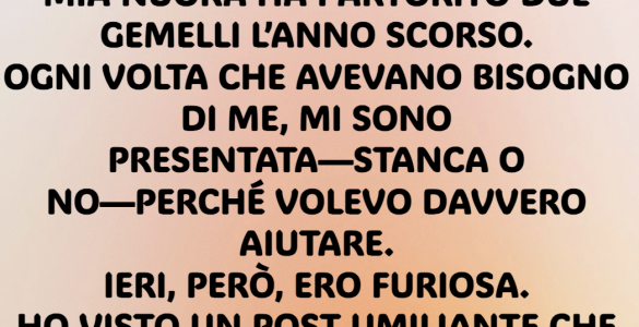 Mia nuora ha dato alla luce due gemelli l’anno scorso. Ogni volta che avevano bisogno di me, mi sono presentata—stanca o no—perché volevo sinceramente aiutare. Ieri, però, ero furiosa. Ho visto un post su Facebook che...