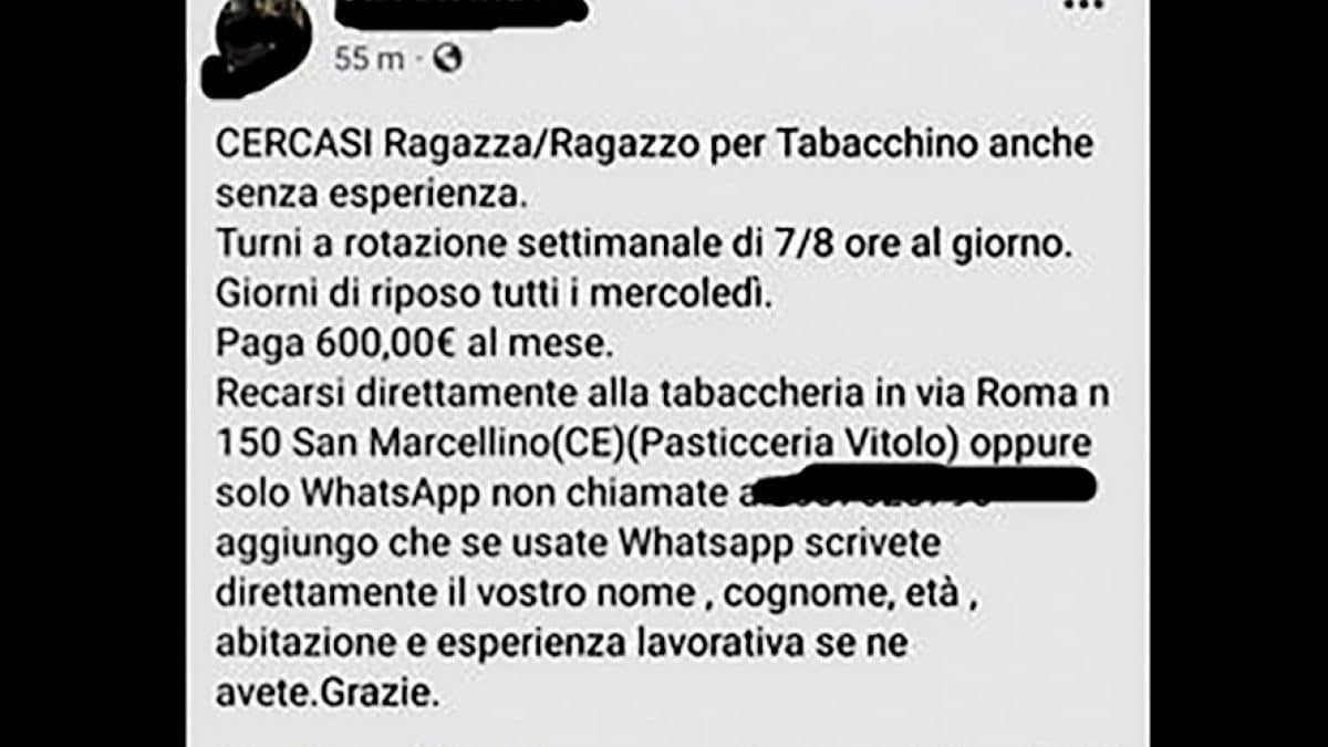 News Offerta di lavoro indecente: tabaccaio del Casertano propone 600 euro al mese, 3 euro all’ora Emanuela B.20/07/2022