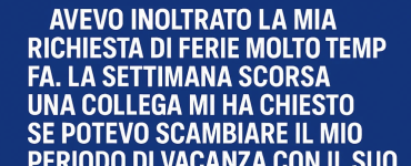 News Avevo chiesto le ferie da tempo. Poi la mia collega ha provato a scambiarle—e quello che ho scoperto mi ha lasciata di stucco Emanuela B.12/10/2025