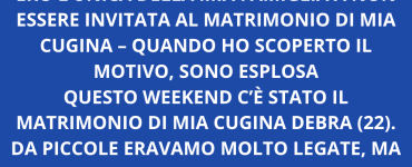 News Ero l’unica della mia famiglia a non essere invitata al matrimonio di mia cugina – quando ho scoperto il motivo, sono esplosa Emanuela B.13/08/2025