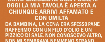 News Sono cresciuta con poco, ma oggi la mia tavola è aperta a chiunque arrivi affamato e con umiltà Emanuela B.19/08/2025