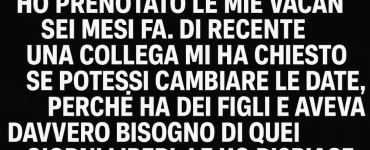 News Mi ha pregato di scambiare i giorni di vacanza… ma non sapevo che avesse già detto al mio capo che avevo accettato. Emanuela B.26/10/2025